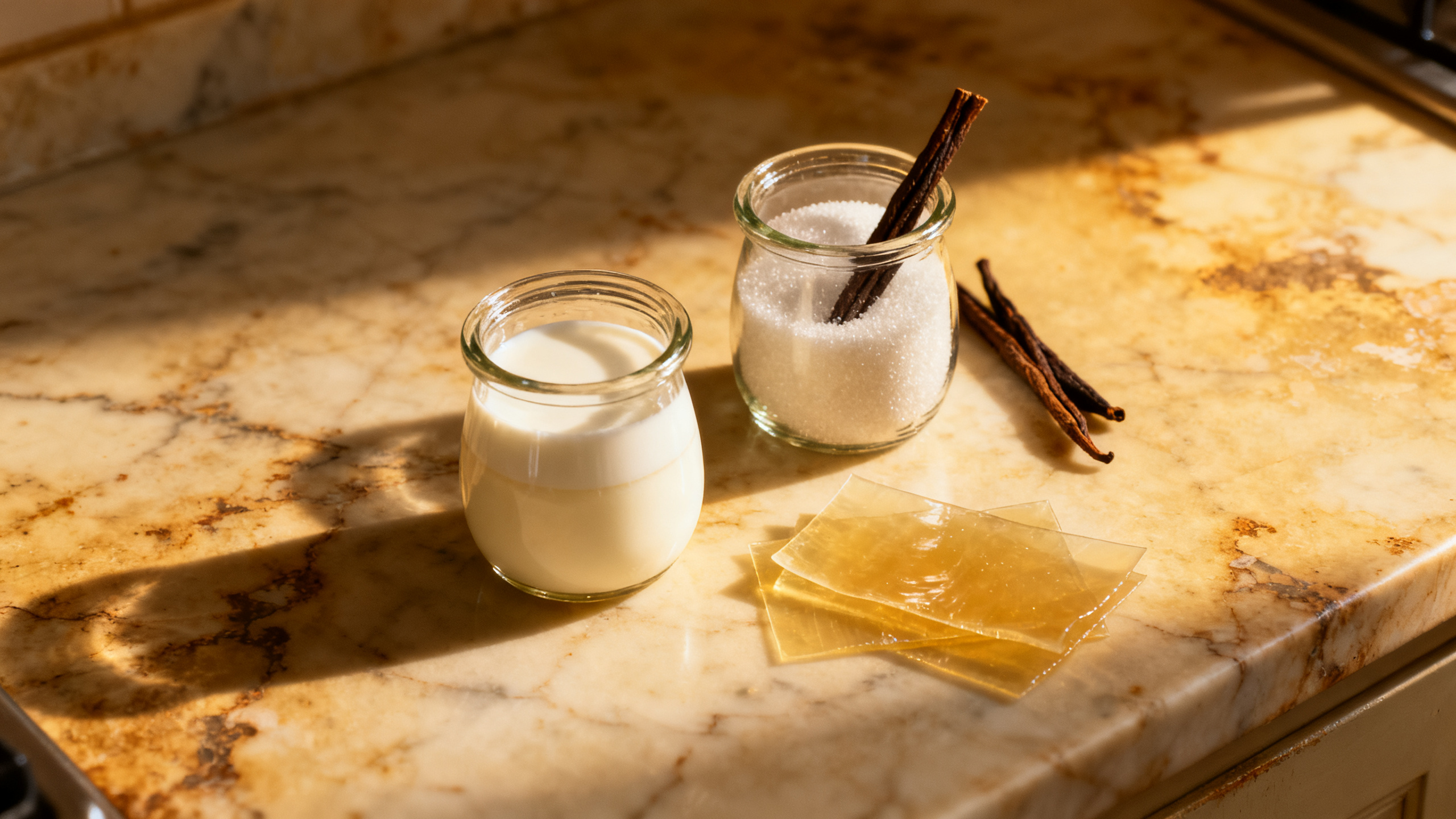 La recette de base tient en trois ingrédients : crème liquide entière, sucre, gélatine. C'est tout. Ce qui signifie que la qualité de la crème compte vraiment — il n'y a rien derrière quoi se cacher.